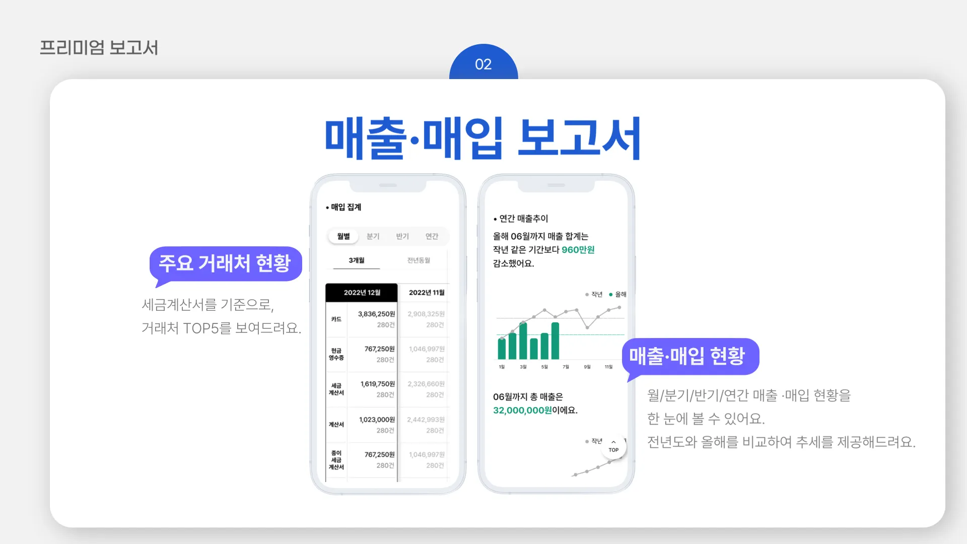 단순 세무신고를 넘어 매출 분석부터 재무 현황까지,
