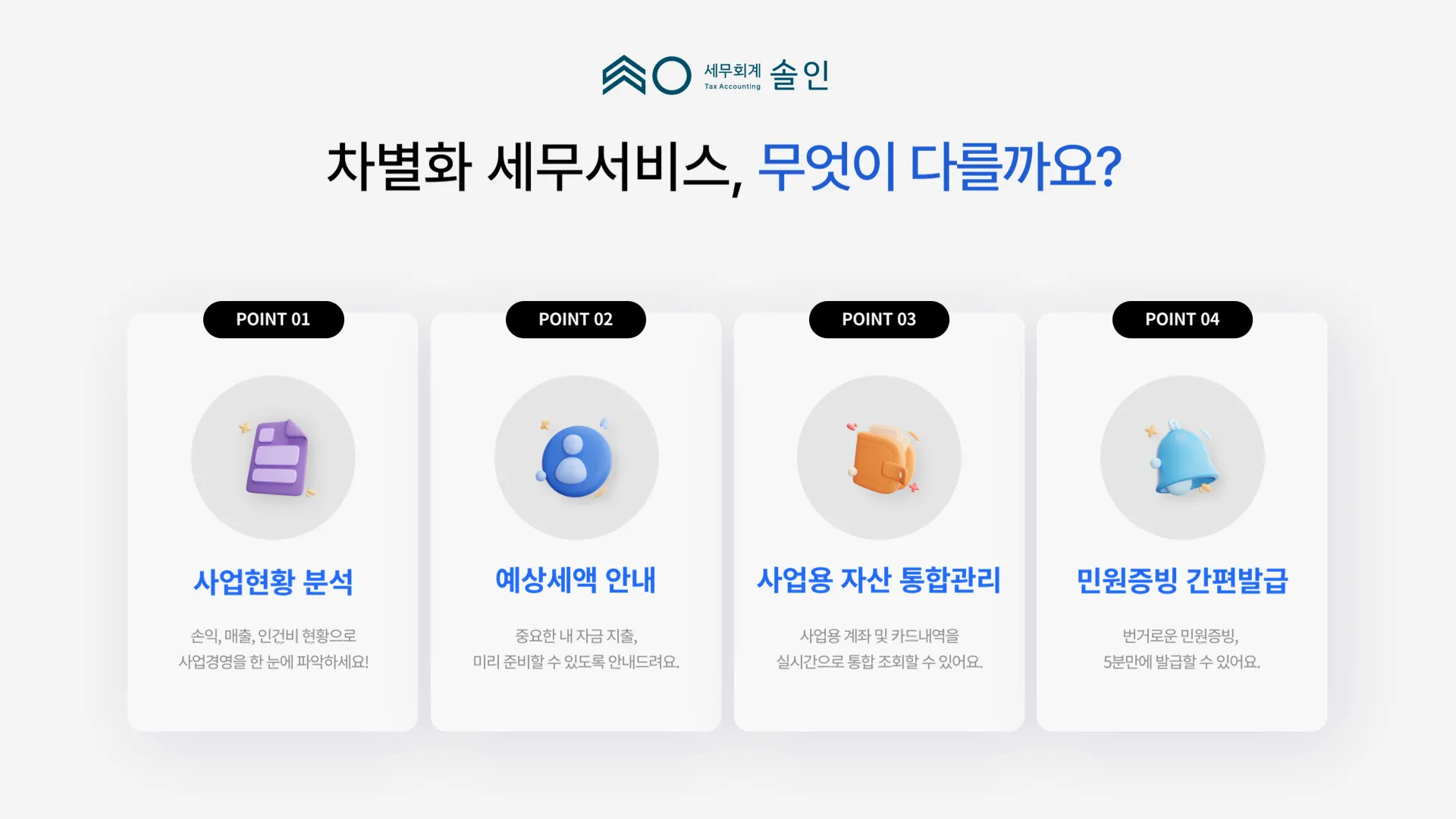 세무회계 솔인은 고객과의 소통을 최우선으로, 믿고 맡길 수 있는 세무 서비스를 제공합니다.